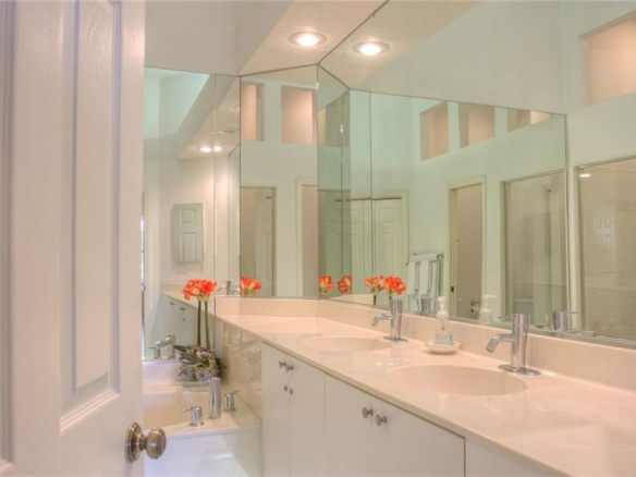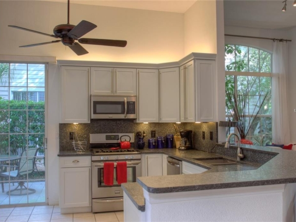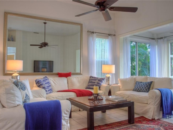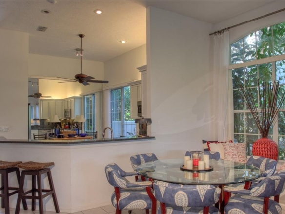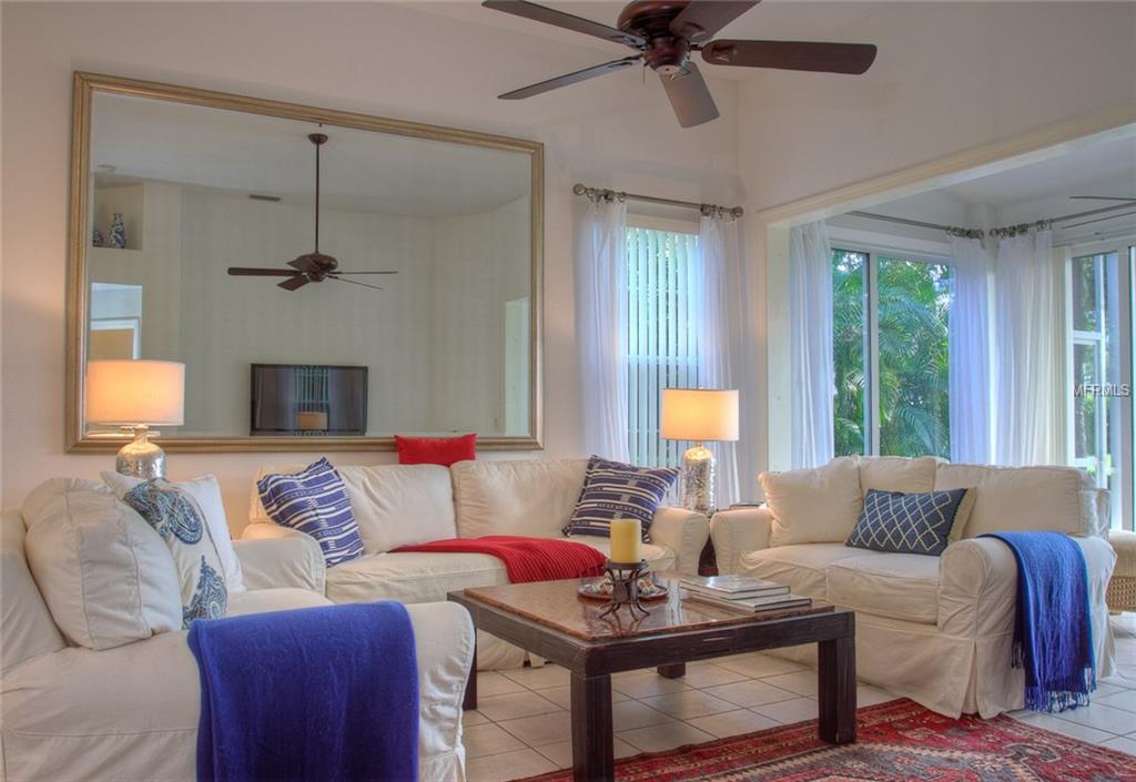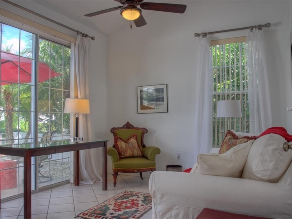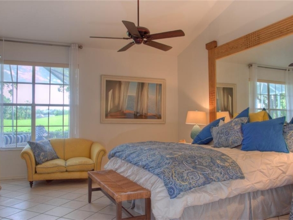 Beautiful decorating in this large villa with expansive views over the University Park golf course. All tile floors and large screened lanai overlooking the greens and sand trap. High end decorating in all the rooms, all tastefully coordinated. The villa has a king sized bed in the master bedroom, in the second bedroom there are two twin sized beds, then in the office/den there is a couch with a queen sized fold out bed. Off the kitchen there is a barbeque patio for ease of entertaining. The detached garage features installed cabinets for extra storage. Great location for your vacation on the exquisite golf course of University Park. UNIVERSITY PARK/ SEASONAL VILLA /SARASOTA/ BRADENTON FLORIDA